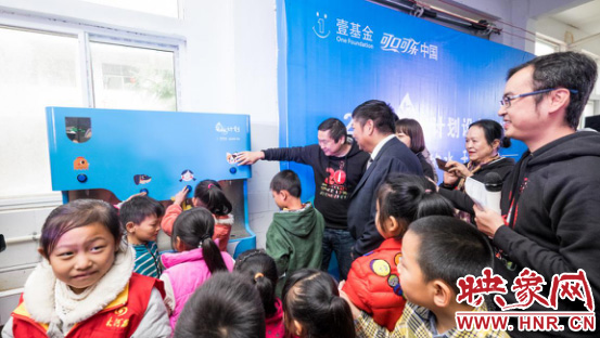 (2016年10月28日,周口)“天冷了,可以直接有干凈的熱水喝,太好了?!眹掳惭b上的凈水設(shè)備,姚集元橋小學(xué)的孩子們十分的好奇。