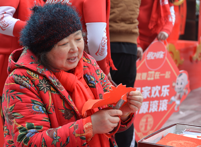 悄然間“我可能過個(gè)了個(gè)假年”在朋友圈熱傳,過年就要有“年味”。在鄭州最繁華的二七商圈,丹尼斯大衛(wèi)城廣場前,可口可樂攜手丹尼斯共同打造了河南特色年俗街,有傳統(tǒng)木板年畫制作,寫春聯(lián),剪窗花,捏糖人等。現(xiàn)場人頭攢動(dòng),好不熱鬧。