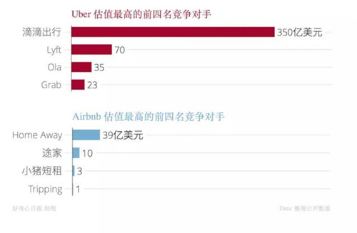 相比之下,Airbnb 沒(méi)有多少相同商業(yè)模式的競(jìng)爭(zhēng)對(duì)手,而且規(guī)模很小。規(guī)模最大的一家 Home Away 也只有 39 億美元的估值。