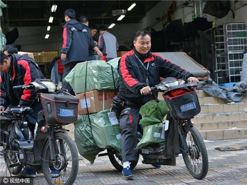 (作者:單新寧)雙十一期間,順豐快遞員在送貨,圖片來自視覺中國,未經(jīng)授權,請勿使用