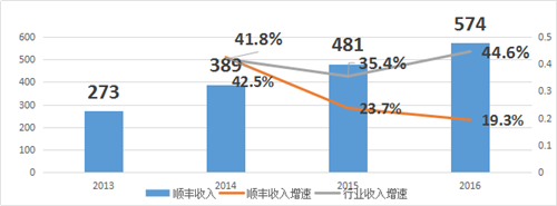 順豐與行業(yè)整體收入增速對比