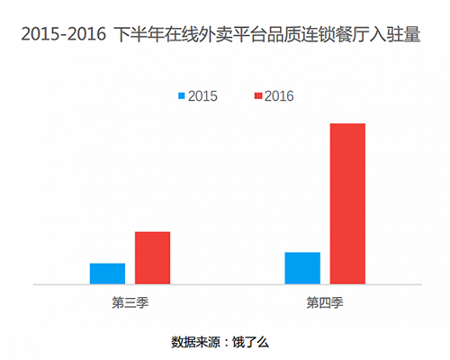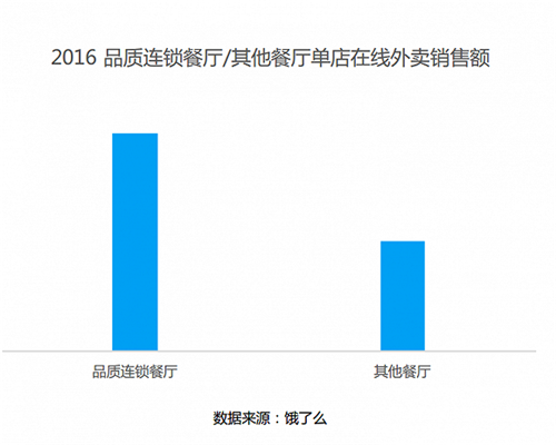 2016年,在線外賣平臺(tái)餓了么季度客單價(jià)提升19%,與此同時(shí)品質(zhì)連鎖餐廳入駐外賣平臺(tái)數(shù)量大幅提升,同時(shí)營(yíng)業(yè)額相比普通餐廳也較高。
