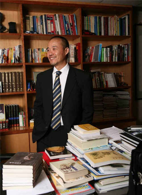 2007年1月,王石在萬科的深圳辦公室里,他的辦公桌被各種書籍包圍。(攝影 / 鄧攀)