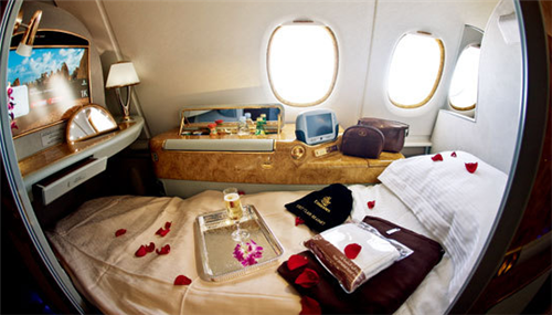 僅僅讓機(jī)艙變得高科技還不夠。一些航空公司的機(jī)艙也朝酒店化的方向設(shè)計,阿迪哈德航空就推出了第一個空中包房,12平方米的空間內(nèi)包括獨(dú)立的客廳、衛(wèi)生間和擁有雙人床的臥室,以及專屬的廚師和管家。