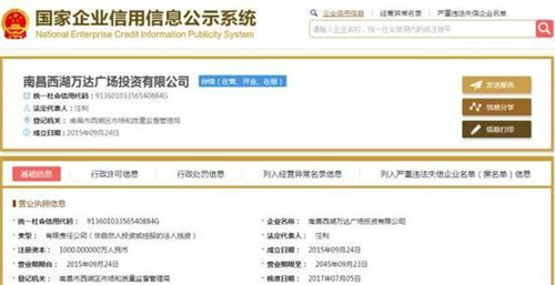 據(jù)萬(wàn)達(dá)集團(tuán)信息,今年6月23日,南昌西湖萬(wàn)達(dá)廣場(chǎng)開(kāi)業(yè)。隨后,7月5日,該廣場(chǎng)的經(jīng)營(yíng)范圍、投資人、法定代表人就出現(xiàn)變動(dòng)。
