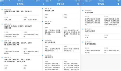 工商信息顯示,大同萬(wàn)達(dá)房地產(chǎn)開(kāi)發(fā)有限公司、南昌西湖萬(wàn)達(dá)廣場(chǎng)投資有限公司和崇州萬(wàn)達(dá)廣場(chǎng)置業(yè)有限公司依次于2017年7月3日、7月5日和7月11日發(fā)生了信息變更,單一股東由“大連萬(wàn)達(dá)商業(yè)地產(chǎn)股份有限公司”變更為“珠江人壽保險(xiǎn)股份有限公司”,法人均由“齊界”變更為“汪利”,董監(jiān)高人員也全面“換血”。