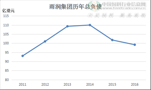 上圖顯示出了雨潤集團自2011年開始的負債金額,營收腰斬的情況下,雨潤集團仍然債臺高筑。