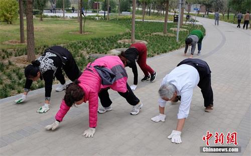 市民在公園爬行鍛煉身體