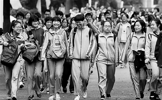 湖州中學(xué)考點(diǎn),考生面帶笑容走出考場。 陸偉 楊斌英 攝