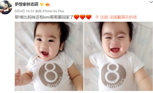 林志穎的長(zhǎng)子Kimi已經(jīng)6歲,雙胞胎兒子則是2015年12月才生下來(lái),他4日在社交網(wǎng)站曬出雙胞胎兒子的照片,用童稚的語(yǔ)氣寫道“耶!爸比媽咪還有kimi哥哥要回家了,好想你們喔”,照片中可以看到2個(gè)兒子穿著印有8個(gè)月的寶寶衣,似乎在暗示雙胞胎又長(zhǎng)大1個(gè)月了。