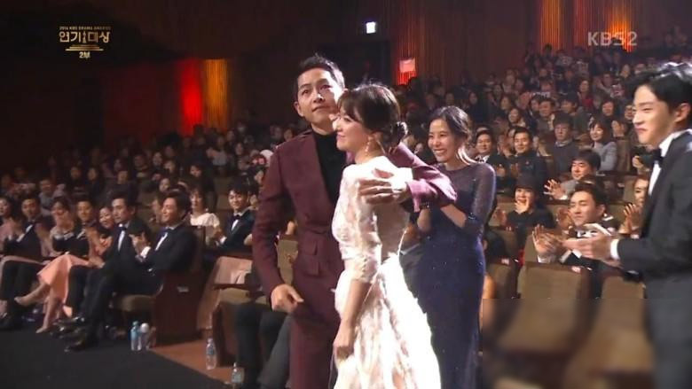 2016年KBS演技大賞最重要大獎(jiǎng)由《太陽的后裔》宋仲基和宋慧喬獲得,兩人一上臺(tái)皆難掩激動(dòng)情緒,忍不住哽咽。宋慧喬對(duì)于獲得“最佳CP獎(jiǎng)”發(fā)表感言,“和喜歡的人一起領(lǐng)獎(jiǎng),真的很開心”,在主持人全炫茂的詢問之下,滔滔不絕地稱贊宋仲基就和劇中的劉時(shí)鎮(zhèn)一樣,“幽默、聰明、真誠又溫柔”,宋仲基則回贊對(duì)方,“真的非常美麗又大方”,他們更現(xiàn)場重現(xiàn)了“什么血型”的撒嬌,彼此溺愛的眼神超吸睛。