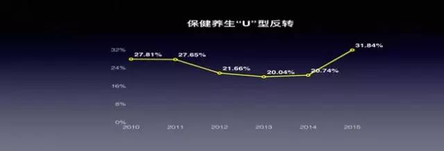 消費“U”型反轉(zhuǎn),保健養(yǎng)生的消費意愿較過去幾年明顯提升,未來一年,有31.84%的受訪者想要購買保健養(yǎng)生,消費意愿上升到第三位。