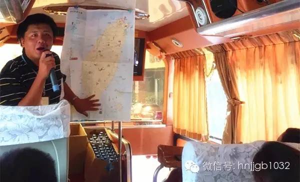 在大巴上,導游阿賢介紹這次環(huán)島之旅的行程。