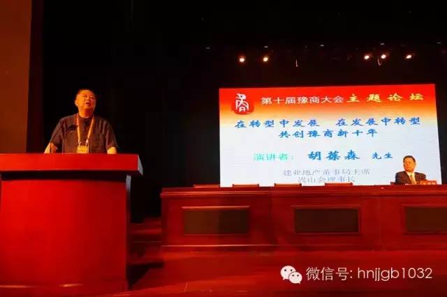 建業(yè)集團(tuán)董事局主席、嵩山會(huì)理事長胡葆森先生 發(fā)表了“在轉(zhuǎn)型中發(fā)展 在發(fā)展中轉(zhuǎn)型 共創(chuàng)豫商新十年”的演講,對“為什么要轉(zhuǎn)型,如何轉(zhuǎn)型”做出精彩見解?!稗D(zhuǎn)型不是轉(zhuǎn)行,而是圍繞既有的資源進(jìn)行轉(zhuǎn)型。要充分利用互聯(lián)網(wǎng)思維,在相關(guān)的產(chǎn)業(yè)鏈上進(jìn)行轉(zhuǎn)型”。