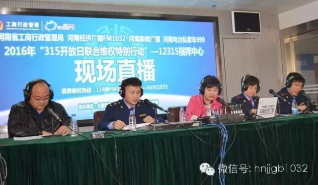 今年“315”,河南經(jīng)濟廣播創(chuàng)新節(jié)目形式,聯(lián)合河南新聞廣播、私家車999 進行了并機直播。昨天(3月14日)上午9點至11點,并機直播2016年“315開放聯(lián)合維權(quán)特別行動”特別節(jié)目順利進行;直播現(xiàn)場省工商局進行了權(quán)威發(fā)布,為大家第一時間帶來我省2015年315投訴權(quán)威信息!