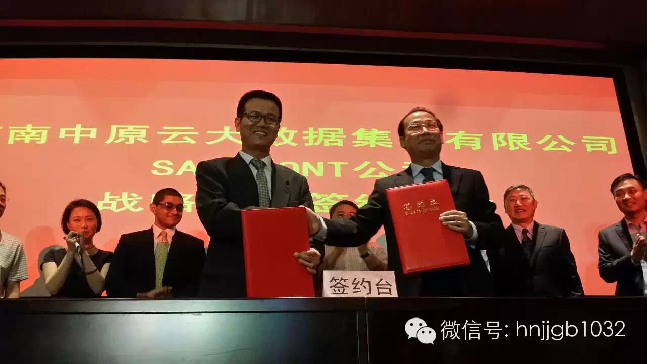 剛剛交付的中原云平臺(tái)今天上午在鄭州中原福塔簽下了跨境合作的第一單——河南中原云大數(shù)據(jù)集團(tuán)有限公司&美國 Sanipont international LLC公司戰(zhàn)略合作協(xié)議。