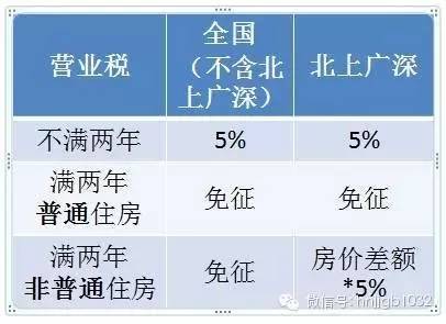 但“北上廣深”四個(gè)一線城市暫不實(shí)施,也就是說(shuō),北上廣深在營(yíng)業(yè)稅政策方面仍實(shí)行財(cái)稅〔2015〕39號(hào)文,即個(gè)人購(gòu)買(mǎi)不足2年的住房對(duì)外銷(xiāo)售的,全額征收營(yíng)業(yè)稅;個(gè)人購(gòu)買(mǎi)2年以上(含2年)的非普通住房對(duì)外銷(xiāo)售的,按照其銷(xiāo)售收入減去購(gòu)買(mǎi)房屋的價(jià)款后的差額征收營(yíng)業(yè)稅;個(gè)人購(gòu)買(mǎi)2年以上(含2年)的普通住房對(duì)外銷(xiāo)售的,免征營(yíng)業(yè)稅。