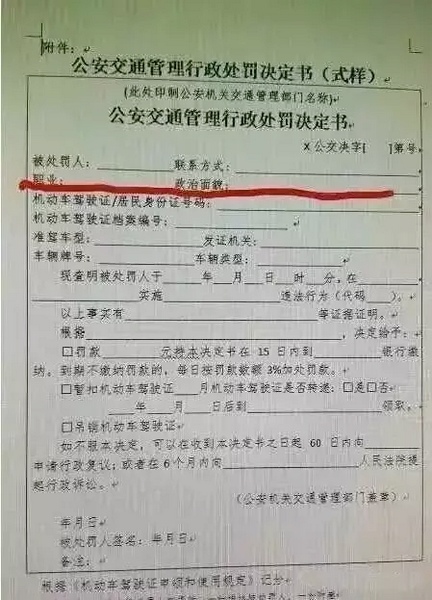 2016年7月1日起,機(jī)動(dòng)車駕駛?cè)藢?shí)施交通違法行為后,公安交通管理部門在對(duì)交通違法作出行政處罰時(shí),被處罰人的政治面貌和職業(yè)信息將被調(diào)查,涉及中共黨員和國(guó)家工作人員的將被通報(bào)紀(jì)檢監(jiān)察機(jī)關(guān)。