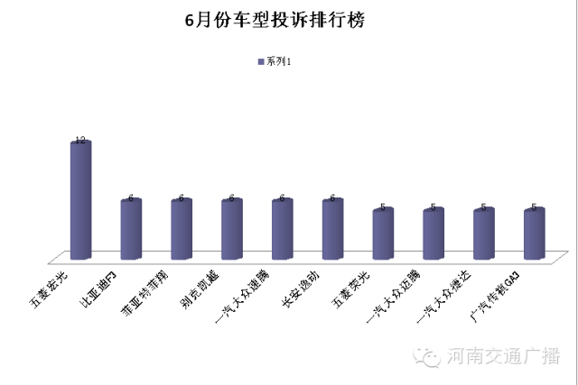 2015年6月份,河南交通廣播《1041維權(quán)直通車》接到汽車投訴418起,本次投訴排行榜上海大眾首次退出了“前三甲”,但一汽大眾仍然一馬當(dāng)先。