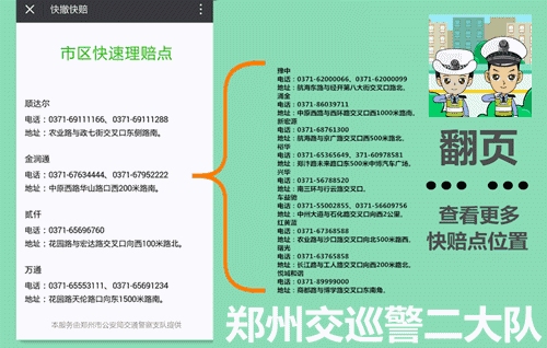 4、適用范圍:交警二大隊(duì)轄區(qū)內(nèi)嵩山路(含)嵩山路以西區(qū)域及中原區(qū)、西開(kāi)發(fā)區(qū)全境,公共道路上發(fā)生的兩車(chē)事故,車(chē)輛能夠正常駕駛,沒(méi)有人員受傷,均適用。