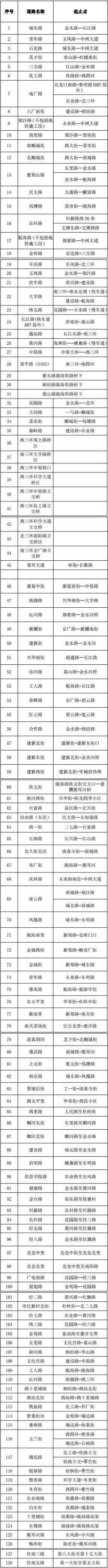 【附】2018年鄭州市道路整修名單:
