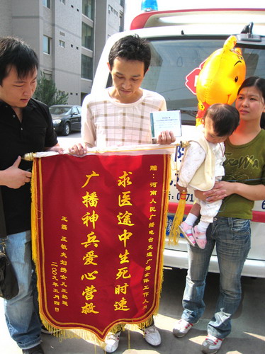 4月6日,在河南人民廣播電臺空中電波的幫助和協(xié)調(diào)下,衛(wèi)生、高速路政、交警等部門齊心協(xié)力,展開了一場挽救生命的接力大行動,信陽一名生命垂危的手足口病患兒王然得到了及時救助。經(jīng)過近一個月的精心治療,5月5日上午,王然康復出院,坐上了回家的列車。