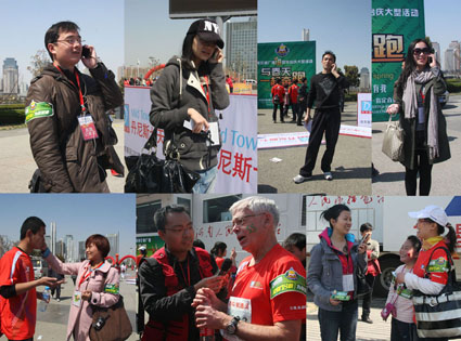 在歷時(shí)四個(gè)小時(shí)的直播過程里,現(xiàn)場(chǎng)大型直播車就像漂浮在旗幟和人群大海洋中的帆船,顛簸在聲浪中的現(xiàn)場(chǎng)主持人與主直播室的主持人默契配合,共完成與現(xiàn)場(chǎng)記者連線20多個(gè),分別邀請(qǐng)了鄭州市副市長(zhǎng)劉東、1041跑友團(tuán)、冠軍選手、情侶馬拉松參賽者、志愿者等嘉賓走進(jìn)現(xiàn)場(chǎng)直播車,就全民健身的話題進(jìn)行溝通、交流、分享。而守候在多個(gè)點(diǎn)位的15名現(xiàn)場(chǎng)記者用手機(jī)連線的方式,為聽眾傳遞出賽場(chǎng)激昂的心跳聲、沸騰的歡呼聲,并通過電波飛揚(yáng)在春天里,彌漫在春風(fēng)中!