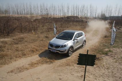 ?。ㄜ囉押嫌埃?br /> 報(bào)名參加這次越野活動(dòng)的河南交通廣播的愛心車友達(dá)到100多名?;顒?dòng)現(xiàn)場(chǎng),上百號(hào)人讓平時(shí)寂靜的黃河灘熱鬧起來(lái),河邊的一塊空地上,一百多面旗子在迎風(fēng)飄揚(yáng)——“河南交通廣播”的LOGO下赫然印著“越野汽車公開體驗(yàn)營(yíng)”九個(gè)大字,背景板不遠(yuǎn)處,就是體驗(yàn)駕馭越野車的賽場(chǎng)。駝峰、馬蹄坑、滾木路障、彈坑路、沙土路、連續(xù)轉(zhuǎn)彎……墨綠色背景的提示牌讓越野的氣息撲面而來(lái)。
