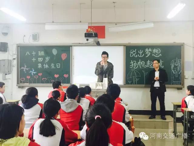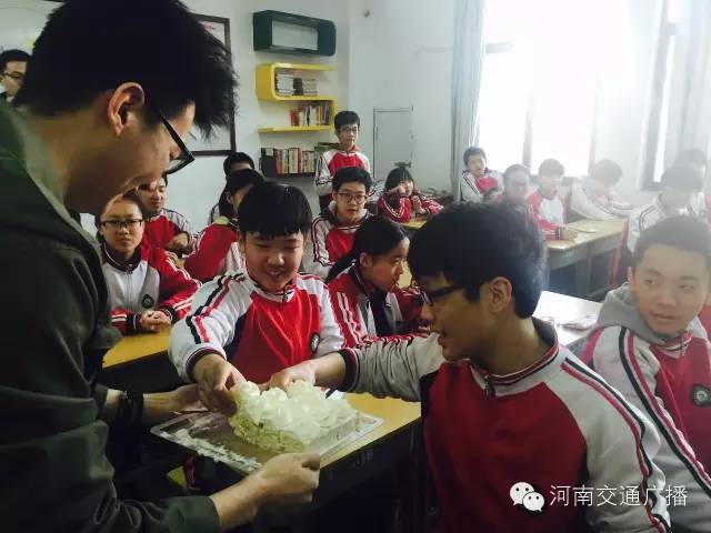 班主任李少鋒老師很激動(dòng),他說,沒想到一條小小的微信,竟然真的請(qǐng)到了河南交通廣播主持人來給同學(xué)們送蛋糕,他說,這樣的班會(huì)開得很有意義,讓孩子們學(xué)會(huì)分享,是與同學(xué)們心貼心的交流。