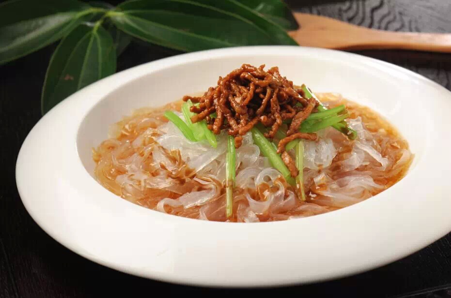 肉絲帶底一大怪,五味調(diào)和天下菜。芥辣酸爽開口胃,一菜兩吃放不下筷。