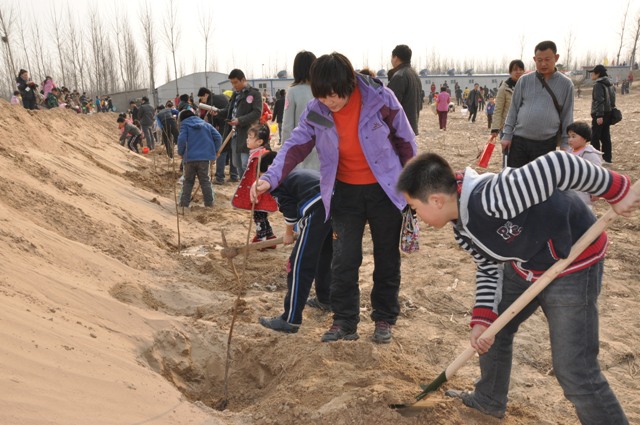 植樹節(jié)前夕,教育廣播帶領(lǐng)20組聽眾家庭,來(lái)到黃河岸邊種植樹苗。一到達(dá)種植地點(diǎn),面對(duì)大片的沙漠化土地,教育廣播總監(jiān)張建功談起了這次活動(dòng)的初衷,“舉目望去,周圍全是沙灘,可以想到很多沙漠化的土地。我們教育廣播有責(zé)任讓孩子知道,愛護(hù)我們的家園從小做起,從我做起,從種植每一顆樹苗做起。”20組聽眾家庭將一顆顆充滿希望的果樹苗和自己的心愿卡一同種下。家庭代表說(shuō),“這個(gè)活動(dòng)非常有意義,能夠讓小孩子跟小樹一起成長(zhǎng),把這心愿埋到樹下面。在他成長(zhǎng)過(guò)程中有一個(gè)這么好的回憶,我們覺得非常高興。”