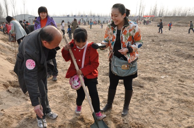 家長(zhǎng)耐心指導(dǎo)孩子植樹技巧