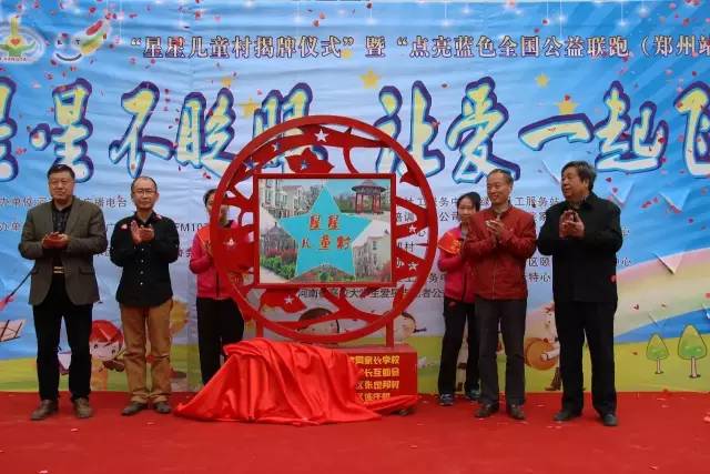 省殘聯(lián)原副理事長(zhǎng)王永章、河南電臺(tái)農(nóng)村廣播綠色頻道FM1074副總監(jiān)寒江,省殘疾人康復(fù)教育研究中心原主任陳殿奇、張定邦村委黨支部書記兼村委主任張?zhí)駷槲挥趶埗◣痛宓摹靶切莾和濉边M(jìn)行了揭牌儀式,這也是全國(guó)首個(gè)“星星兒童村”。