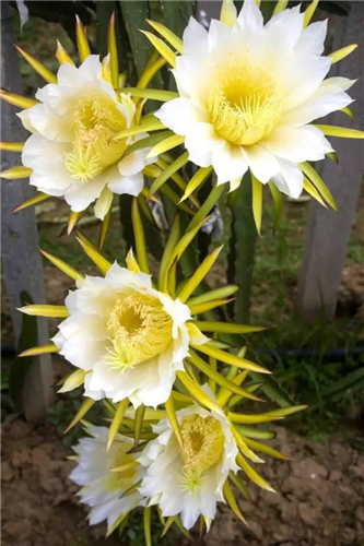 金田地大棚火龍果晚上八九點(diǎn)開始開花,持續(xù)到第二天早上九十點(diǎn)鐘閉合。