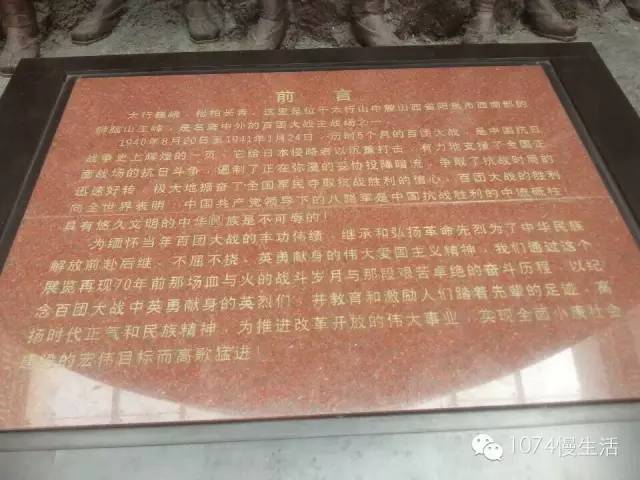 紀(jì)念抗日戰(zhàn)爭暨世界反法西斯戰(zhàn)爭勝利70周年追隨先輩足跡,唱響時(shí)代凱歌——紀(jì)念抗日戰(zhàn)爭暨世界反法西斯戰(zhàn)爭勝利70周年晉冀魯豫記者大型聯(lián)合采訪活動《回聲》拉開大幕前方報(bào)道晉冀魯豫四省聯(lián)和采訪團(tuán)的第二站來到了山西陽泉縣獅腦山百團(tuán)大戰(zhàn)紀(jì)念館,百團(tuán)大戰(zhàn)是中國抗日戰(zhàn)爭時(shí)期,中國共產(chǎn)黨領(lǐng)導(dǎo)下的八路軍、新四軍與日軍在中國華北地區(qū)晉察冀邊區(qū)發(fā)生的一次規(guī)模最大、持續(xù)時(shí)間最長的戰(zhàn)役。