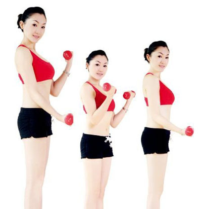 動作要領(lǐng):收腹、挺胸、沉肩、膝蓋微曲,雙手握啞鈴。大臂夾緊身體,保持不動,小臂抬起,與大臂成30°,保持30秒后,落下小臂,使小臂與身體成30°,再保持30秒。每組動作重復(fù)20次以上,每回至少做4組,每組之間要有間隙。