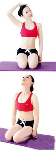 動作要領(lǐng):頭部向左拉伸時,用左手扶頭右側(cè);頭部向右拉伸時,用右手扶頭左側(cè)。每個動作保持30秒,前15秒順向拉伸,后15秒對抗拉伸。頭部向后拉伸時,慢慢向后抬到最高處,感覺頸部完全拉伸保持30秒,返回至初始位置。每個動作各做5次,做2~3組進(jìn)行一次頭部的正向和逆向旋轉(zhuǎn)。每回至少做5組,每組之間要有間隙。小貼士:注意手部力量不要過大,輕輕按壓。頸部不要松懈,要有力量支撐。