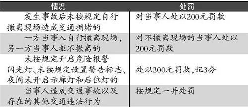 即日起,交管部門將依法加強對“發(fā)生輕微交通事故后,未按照規(guī)定自行撤離現(xiàn)場”的交通違法行為的處罰力度,輕微事故發(fā)生后撤離不及時致堵將被罰款200元,如果未按規(guī)定開啟危險報警閃光燈等,將處以200元罰款,記3分。交管部門表示,對應(yīng)挪車不挪車的事故當事人“當罰必罰”。