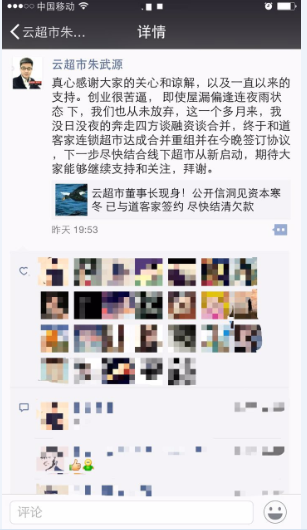 最近一周,在鄭州電商圈悄悄地流傳著這個消息……云超市倒閉了?董事長朱武源失聯(lián)了?讓我們看一下26號各媒體發(fā)出的消息: