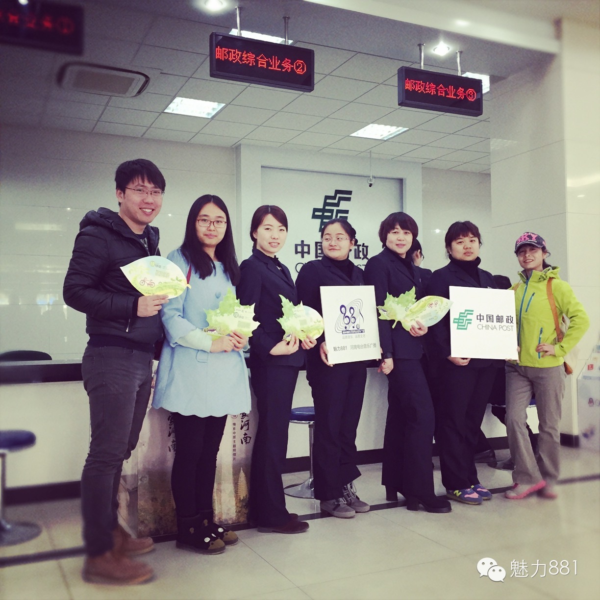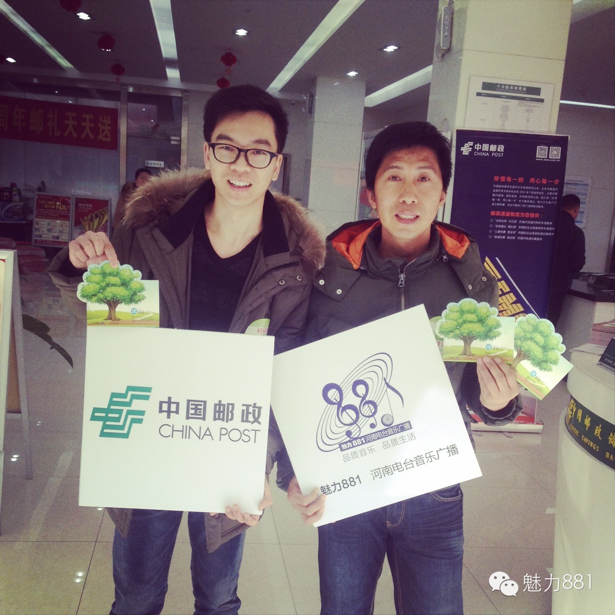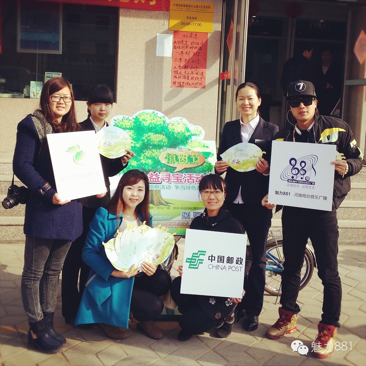 3月12日植樹節(jié),魅力881河南第一音樂廣播攜手鄭州郵政一同打造的“綠色尋寶大作戰(zhàn)”公益活動(dòng)圓滿舉行!今天有四位DJ帶領(lǐng)四隊(duì)聽眾前往市區(qū)指定郵政網(wǎng)點(diǎn),尋找本次活動(dòng)限量定制的環(huán)保明信片。首先要為獲勝的小伙伴鼓掌,同時(shí)也要感謝所有參與本次活動(dòng)的親們,你們都棒棒噠!本次公益活動(dòng)的每一位參與者都是綠色環(huán)保小戰(zhàn)士,有你們?cè)冢G城的樹一定會(huì)更綠,天一定會(huì)更藍(lán)!最后要特別感謝本次活動(dòng)合作方鄭州郵政、綠博園的大力支持,再次感謝魅力881聽眾的參與!