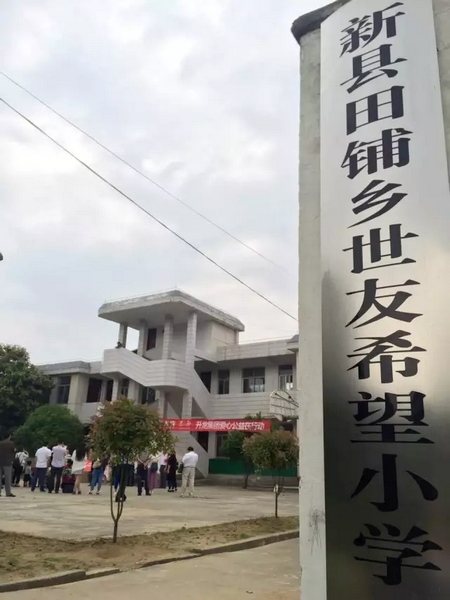 環(huán)顧四周,我們?cè)趺匆蚕氩坏皆谶@個(gè)小山坡坡頂會(huì)有一所希望小學(xué),