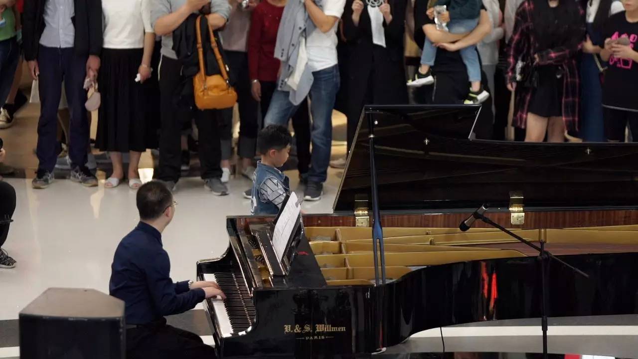 看著孩子還是不說(shuō)話,旁邊的鋼琴師就在這時(shí),彈奏了起來(lái)……