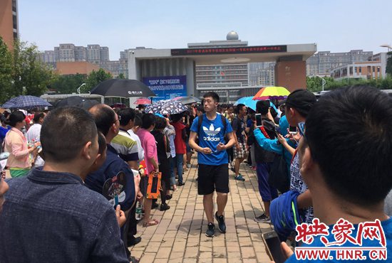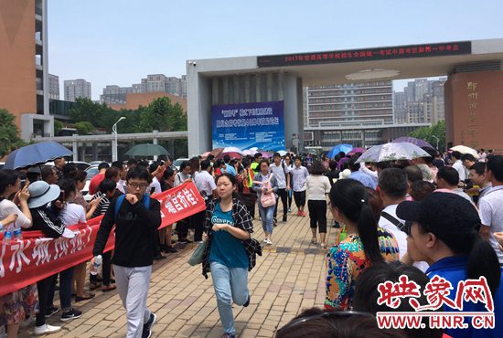 映象網(wǎng)快訊(記者 邱延波 文/圖)“乖乖,這隊伍排得真壯觀?!?月7日上午,中原西路鄭州一中門前,家長們夾道排出百米長的隊伍,等待考生走出考場。