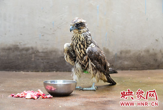 “這是一只獵隼,在我國(guó)屬于國(guó)家二級(jí)重點(diǎn)保護(hù)動(dòng)物。蒙古國(guó)政府在2012年決定,將獵隼確定為蒙古國(guó)“國(guó)鳥(niǎo)”。蒙古國(guó)官方數(shù)據(jù)顯示,蒙古國(guó)境內(nèi)現(xiàn)存獵隼約6800只。由于它分布在蒙古國(guó)和我國(guó)的新疆、甘肅以及內(nèi)蒙古等地,而在我們河南沒(méi)有分布,因此十分罕見(jiàn)。從它頭頂色絨毛還沒(méi)退去就可以看出,它是今年剛孵化出來(lái)兩個(gè)多月的幼鳥(niǎo)。它的右翅膀第四、第五根飛羽有斷裂,右爪輕微擦傷,另外它患有非常嚴(yán)重的腸炎。這只獵隼,應(yīng)該是被人非法飼養(yǎng)后逃逸出來(lái)的,由于其野外捕食能力差,饑腸轆轆,體力不支,飛不起來(lái),后被好心村民發(fā)現(xiàn),要不然是不可能逮住的。也多謝這位好心村民,要不然,它極易受到野狗野貓和其他大型猛禽襲擊或者落入不法分子手中牟取暴利?!倍鹃L(zhǎng)說(shuō)。