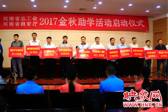 映象網快訊(記者 王寬 實習生 張璨榮 文/圖)又是一年金秋時,助學圓夢暖人心。8月16日,河南省總工會、河南省教育廳共同主辦的河南省2017“金秋助學”活動啟動儀式在鄭州舉行。省委副書記王炯,省人大常委會副主任、省總工會主席王保存,省政府副省長徐濟超,省政協(xié)副主席張廣智出席啟動儀式。