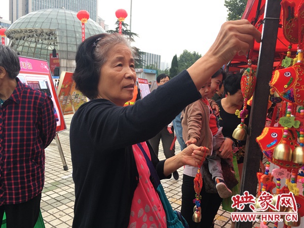 除了小朋友,現(xiàn)場還有很多老人們結(jié)伴在展臺前游逛。今年66歲的趙奶奶就站在一家布藝攤前,為自己身在國外的女兒挑選汽車掛飾?!八恢痹趪猓揖拖虢o她買個有我們中國元素的東西掛在車里?!?/p>
