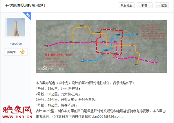 映象網(wǎng)快訊(記者 阮海峰 文/圖)網(wǎng)絡(luò)上謠傳“開封要修建地鐵,市區(qū)內(nèi)規(guī)劃了4條線路”近日不少開封市民在網(wǎng)上看到一則關(guān)于開封要修建地鐵的消息,引來一片熱議,同時市民在論壇上也有發(fā)帖熱議。11月2日,映象網(wǎng)記者隨即向開封市發(fā)改委求證,得知這一消息目前暫無定論,同時也希望大家不要再傳播.