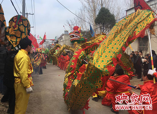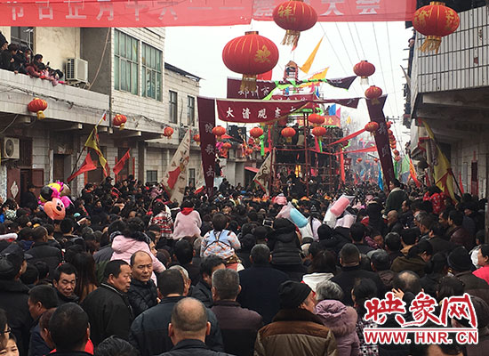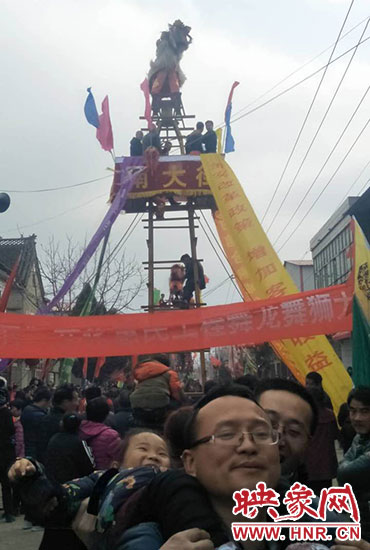 新鄭市觀音寺鎮(zhèn)太清村,新鄭、長(zhǎng)葛、禹州的三縣交界處。3月3日下午15時(shí)許,太清村的街上人山人海,水泄不通。各條街道上鑼鼓喧天,熱鬧非凡。多個(gè)舞獅團(tuán)隊(duì)開始在高高樹起的架子上表演,地面上各種各樣的民間表演爭(zhēng)奇斗艷。