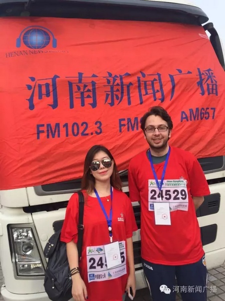 國家大賽,當(dāng)然要有國際友人哦。這位美女來自哈薩克斯坦,中文說的非常溜,這位型男來自烏干達。友誼第一比賽第二,兩位國際友人說,比賽完要好好逛逛我們河南的青山秀水~