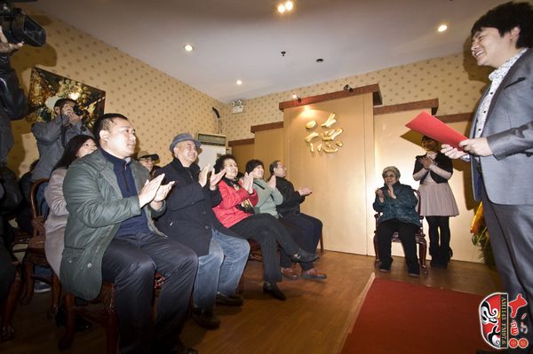 11月19,著名的豫劇表演藝術(shù)家、陳派掌門大弟子吳碧波先生喜收新徒。省豫劇二團青年演員王前正式拜吳碧波先生為師。收徒儀式樸素而溫馨,曲劇名家王秀玲、豫劇名家軒玉亭、陳派名家郭美金、武惠敏、陳素真五子王闿聰?shù)惹皝砼鯃觥?/p>